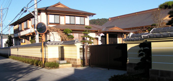本格的な総ヒノキ造りの庫裡移転新築工事は木造2階建て、本堂を含めた延べ面積は約760平方メートル。造作材は当社工場で加工、プレカット材は東京から取り寄せました。工事では特に床板のブビンガー取付は難しい工事となりましたが、契約から丸一年間、10月に無事工期内に完成しました。