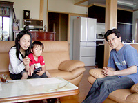 6月の休日、福島駅西口から西へ約3キロという近距離な条件と、静閑な環境に恵まれた地域に新築工事が完成したばかりのSさんのお宅を訪ねました。木造2階建て(延べ面積272平方メートル)の純和風造りの住宅は、なだらかな屋根の傾斜によって、さらにどっしりと大きく見えました。玄関にはSさんと奥さん、そして可愛い盛りの息子さんが出迎えてくれました。真っ先に驚いたのは、玄関が来客用と自家用に分かれていたことでした。広々としたホールを通って居間に案内されましたが、その居間の広さにもびっくりでした。